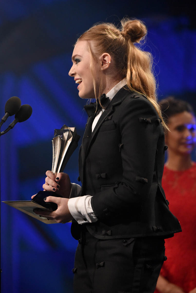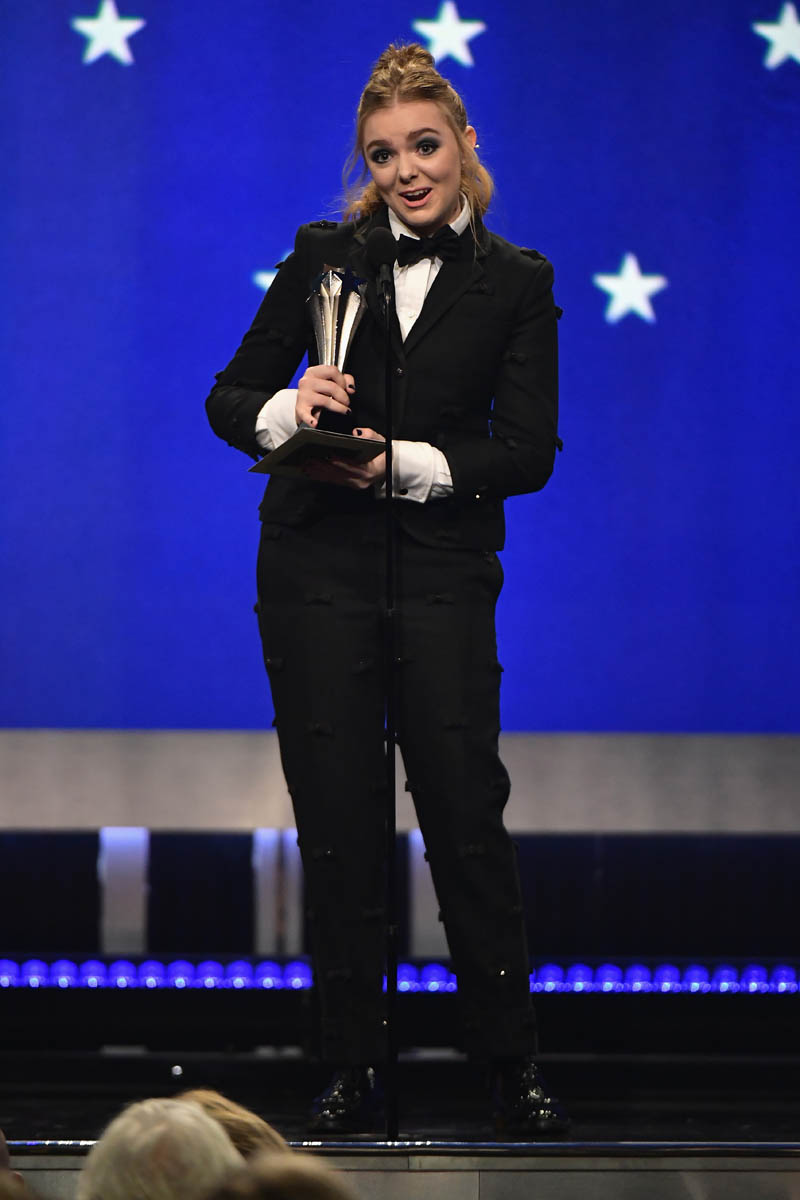 Guys, every second of her winning the Young Performer award was magical. She’s been resolutely wearing suits all through awards season, and while there are people who want to congratulate her (or her parents) for not choosing overly sexualized outfits, I would bet millions of dollars that the decision lies in the adjacent ‘could-people-just-not-look-at-me?’ decision column. She also took a leaf out of the Nicole Kidman “sometimes my hair is just gonna be how it is” playbook, and it looks great.