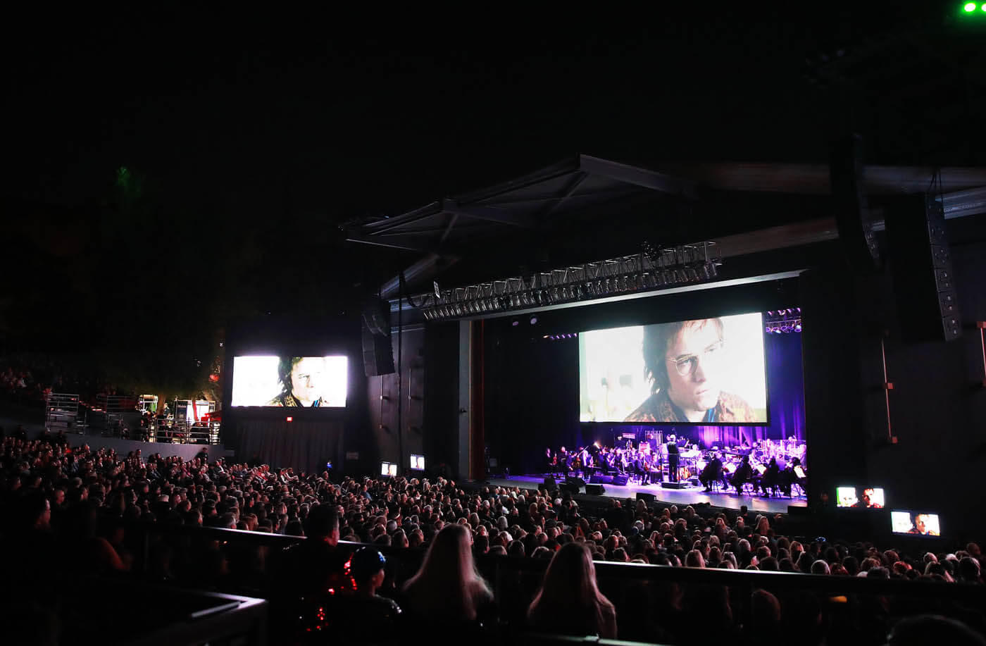 ROCKETMAN made a glitzy award-season push tonight in LA, booking the Greek theater, playing the entire film to live orchestral accompaniment, and bringing out Elton John and Taron Egerton at the end to perform pic.twitter.com/wL0KsacxvE— Kyle Buchanan (@kylebuchanan) October 18, 2019