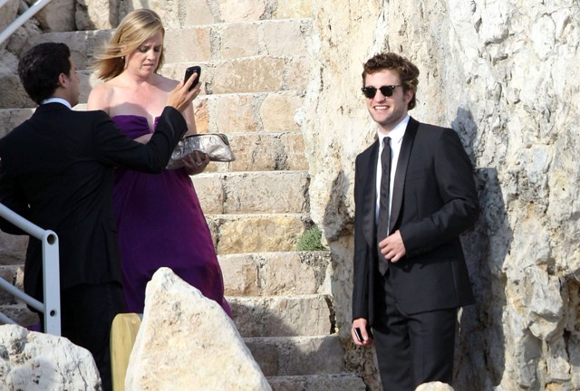 Pattinson arrived with the same two people who accompany him to these events. And another business person. When they sat down, all of them pulled out their blackberries. They were at the table next to us and Laura, fortunately, had the best view. Fortunately because it’s becoming a problem for her. Like when he walked in she almost lost her sh-t. I told her to drink some more rose and chill the f-ck out.