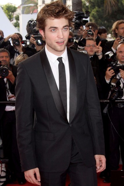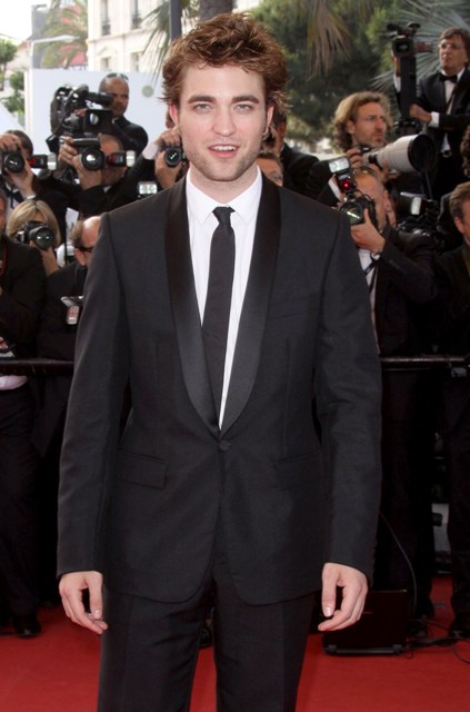 We were exchanging stories about psycho stalker exes when Robert Pattinson sauntered in – as I tweeted last night – looking like a boy on top of the world. It’s been a triumphant first festival for him, especially since it’s not like he has a film entry. But Cannes is about the full court pimp. And Pattinson has solidified his new super celebrity status as Summit successfully maneuvered their golden boy through Cannes this week culminating on the carpet last night at Inglourious Bastards where he received a very, very enthusiastic welcome. Some girl collapsed, fell to her knees, when his image was beamed up on the big screen. She was young though. Forgiveable. Thankfully no twi-hard adult lunatics, at least in my vicinity, decided to embarrass themselves.