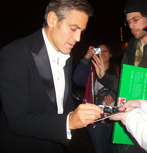 George is still very thin. Debonair as ever but manorexic nonetheless. And there was no mention of Sarah Larsen. He spent a good hour deep in discussion with Marcia Gay Harden. Javier and Pene were openly affectionate, and not in a gaygay faghag kinda way. Are Pene’s bearding days behind her?