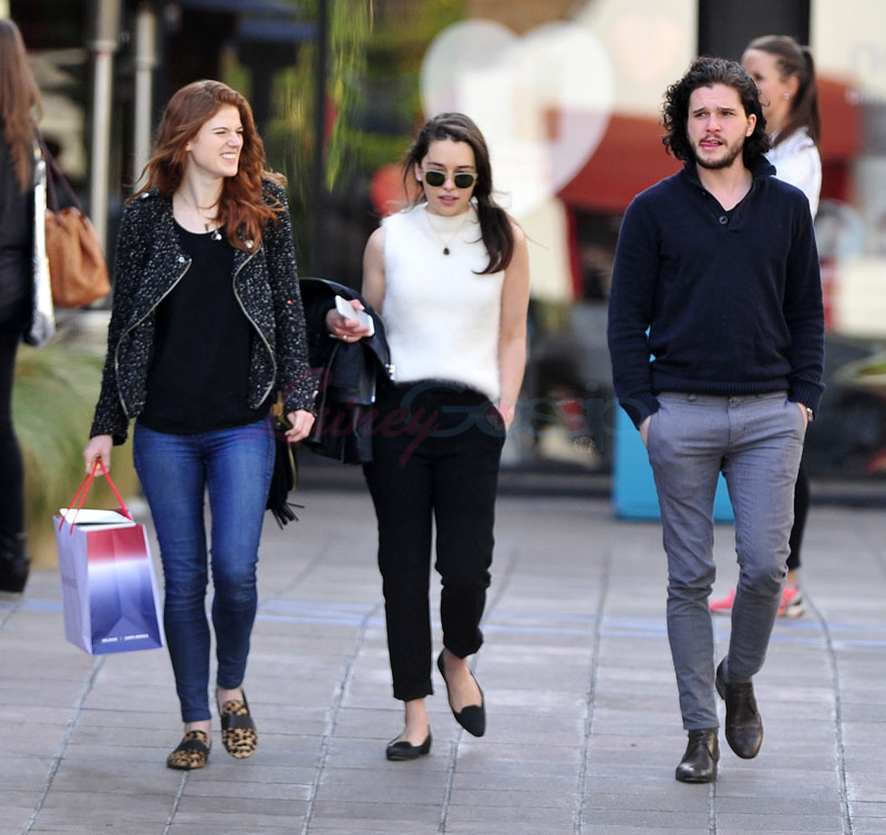 Check out Emilia Clarke, Rose Leslie, and Kit Harington yesterday in LA. They’re close. Rose and Kit used to date, and Rose and Emilia were seen earlier in the day making cute faces at each other, very tactile, over lunch. I could only afford one photo so you’re only seeing the group shot. Trust me though when I tell you that they like each other, they really, really like each other. And it’s not like they constantly hang out when they’re shooting Game Of Thrones either. Emilia is off in her own Khaleesi land while Rose and Kit have to be climbing ice mountains all the time. When they do see each other then is at the parties and during promotion. And on weekends in California for photo shoots and interviews. And they still want to hang out after! Let’s all hug!