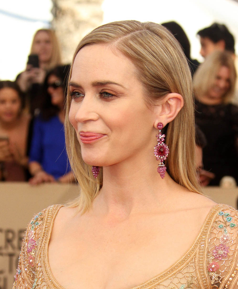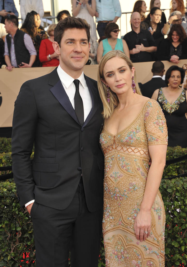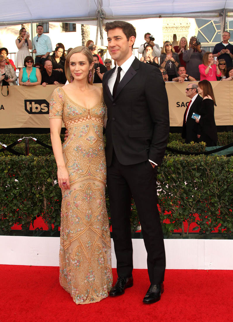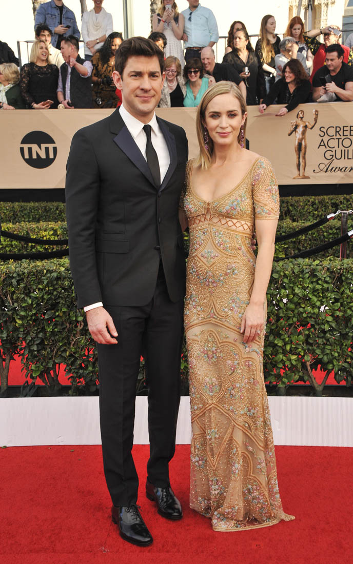 I mentioned John Krasinski and Emily Blunt in my post about Kirsten Dunst, and they were also at the SAG Awards, where Blunt was a nominee for The Girl on the Train, which has more to do with her popularity among her peers than her actual performance. Her face when they announced her name as a nominee says she knows this, too. Anyway, they walked the red carpet together—because they aren’t f*cking precious—and I really want to know what they say to each other at events like this.