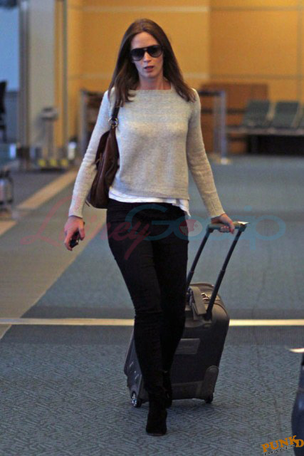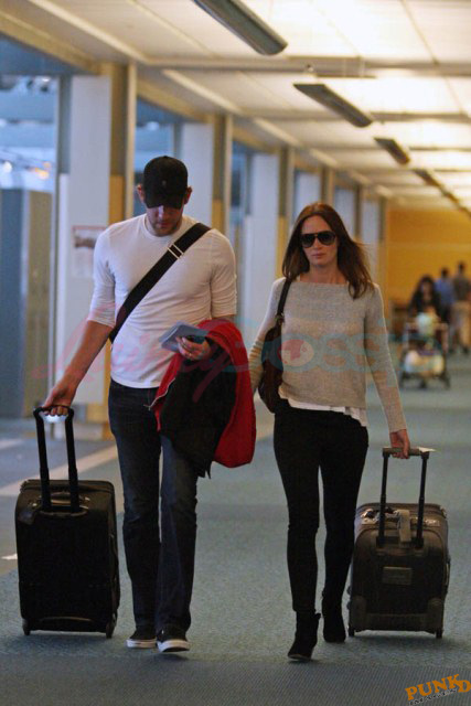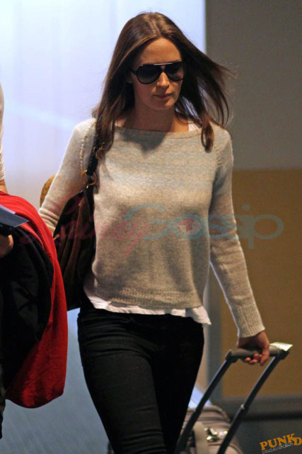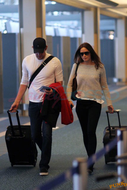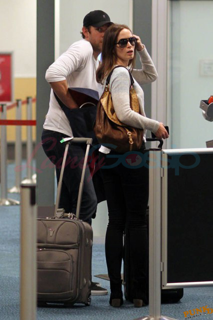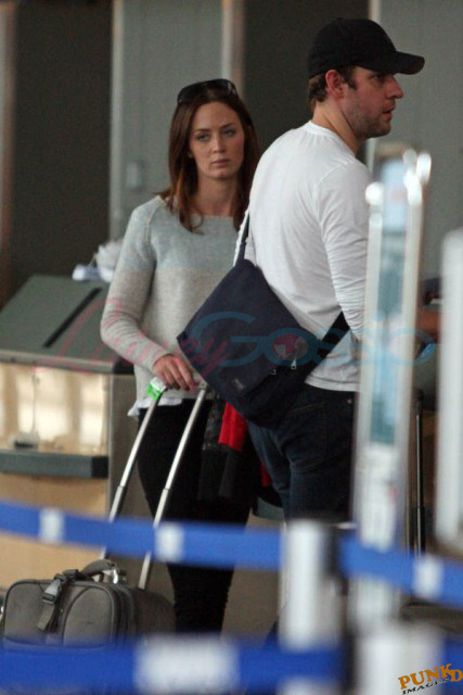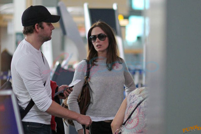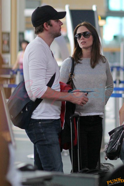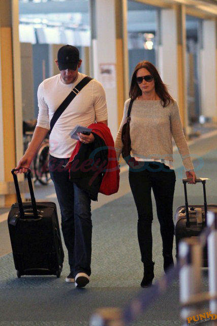 Must have been what Matt Damon and his wife Luciana told Emily Blunt and John Krasinski. And they accepted the invitation to visit them in Vancouver. Here are Emily and John leaving Vancouver on Sunday after a few days in Canada with her Adjustment Bureau co-star. They’ve been hanging out a lot the four of them after shooting that movie together. In New York quite often, and now in Vancouver where Matt’s been working on a new film for a couple of months. Emily and John stayed with the Damons at their rental property; it’s a close friendship. Let’s come back to this in a minute.