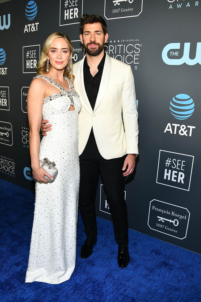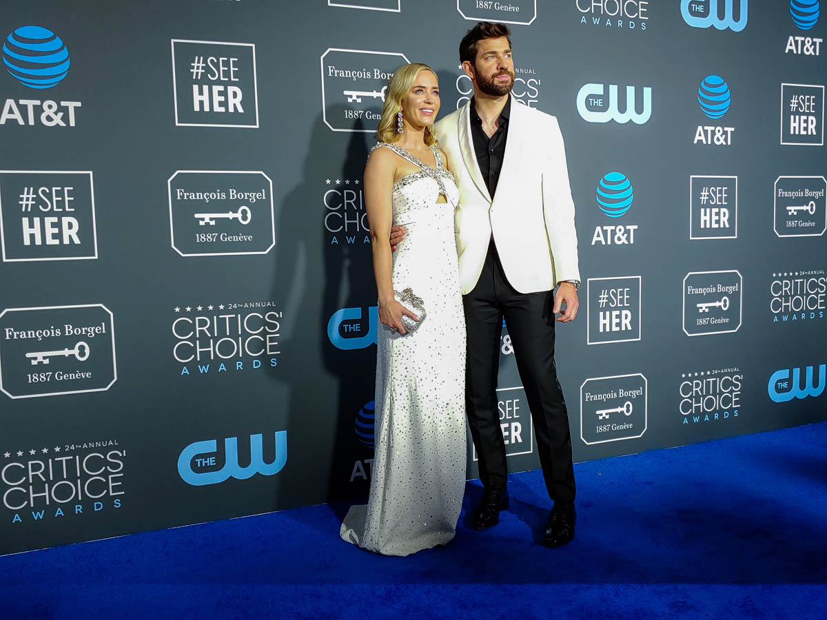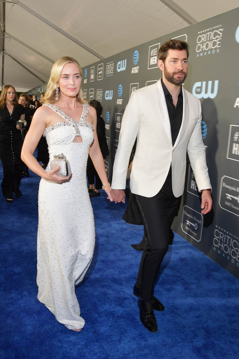 Emily Blunt and John Krasinski arrived together to the Critics’ Choice Awards last night but sat apart – she was with the Mary Poppins Returns table and he was seated with the A Quiet Place team. And then she joined the A Quiet Place team onstage for their win in the Best Horror/Sci category, holding hands with John until he went up to the microphone to talk about what an unforgettable honour it was for him to win the award for working on the film with the “love of my life”. Blunt-Krasinski Inc, brand strong.