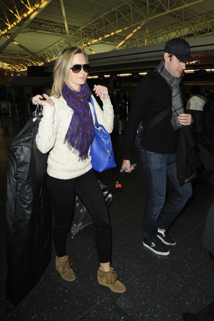 Attached - Blunt and Krasinski arriving in New York yesterday.
