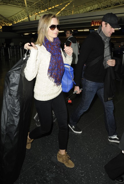 Plenty of industry people want to see Blunt succeed. She’s popular and has an enviable selection of celebrity friends—she and Krasinski are down with George Clooney, Matt Damon and now Jennifer Aniston, too—it’s not like she doesn’t have connections out the wazoo. It’s just a matter of building up her brand. I’m not sure what kind of message is being conveyed by passing on franchise roles but being open to Thankless Girlfriend work; part of her problem is that it’s virtually impossible to identify what she represents to the public. She’s not a fashion girl, she’s not The Funny One, she’s not strictly a character actress, and there’s no big, pre-branded character on the slate either. Who is Emily Blunt? Unfortunately, right now, she’s the one getting left behind.