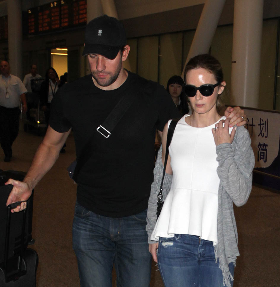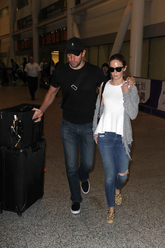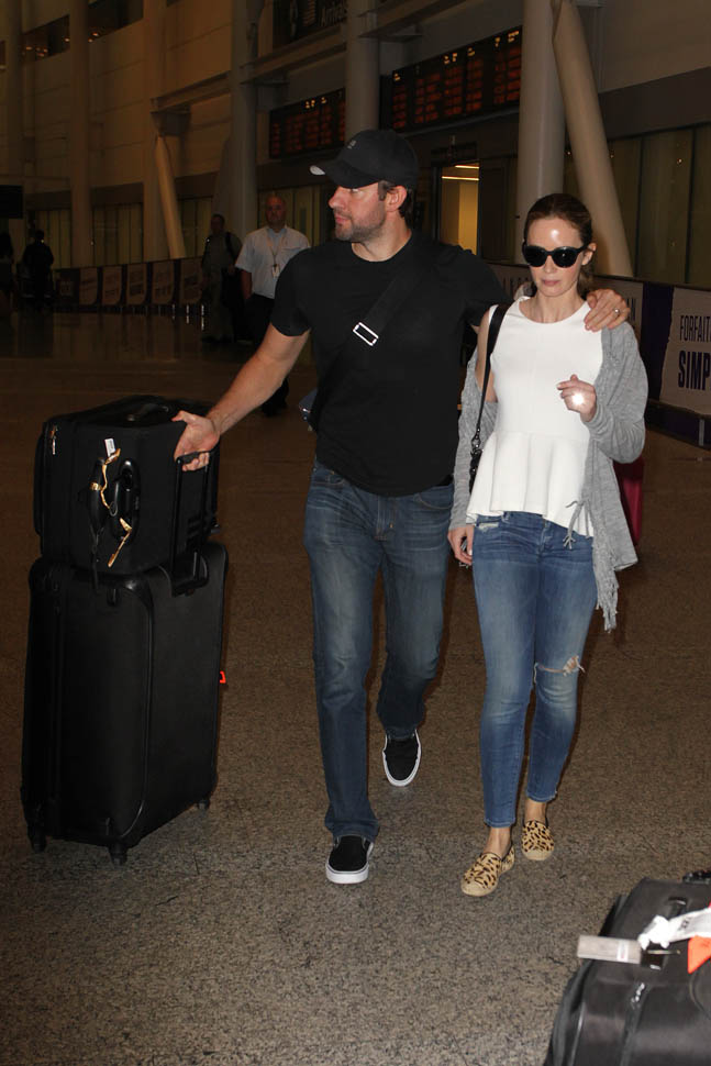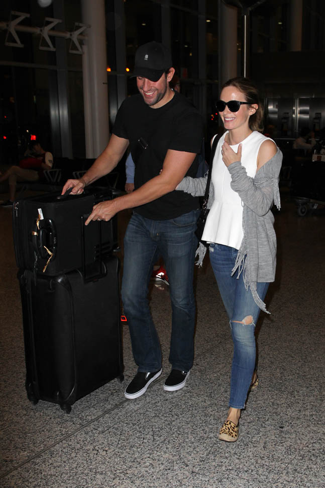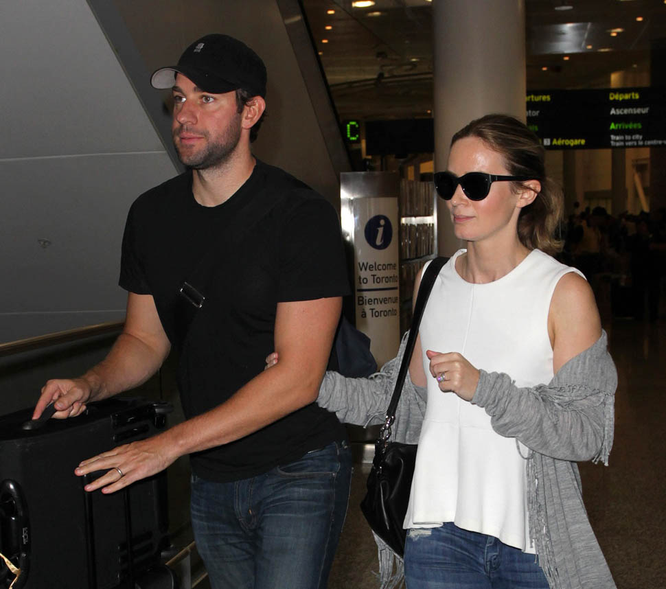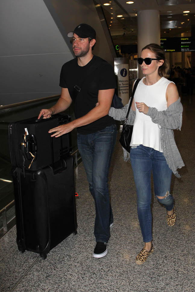 Emily Blunt landed in Toronto last night, with her husband John Krasinski. She's in town for TIFF, and the North American premiere of her film Sicario - it's not a surprise at all that John is with her. They're not shy about hitting carpets together, having done so in TIFFs past, like at the world premiere of Looper with JGL back in 2012.
