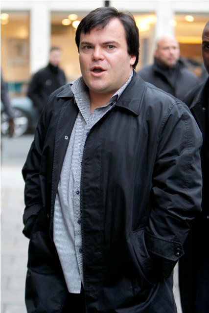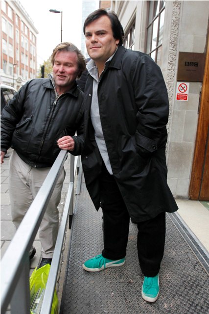Emily Blunt and Jack Black were photographed in London today outside the BBC, beginning promotion on Gulliver’s Travels, due in theatres on December 22, hoping to contend for the holiday box office crown. Earlier this week, Sarah predicted that Gulliver along with what she’s calling “Pedobear: The Movie” ie Yogi Bear (starring the voice of Justin Timberlake) would be the two bombs of the season. Click here if you missed it. Pedobear however is tracking rather well. Because people have sucky taste.