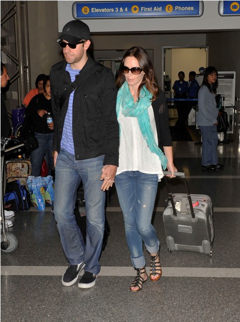 Emily and John returned to LA last night hand in hand looking relaxed and happy and gorgeous. Madonna’s daughter Lola does not approve of her footwear.