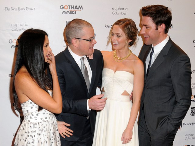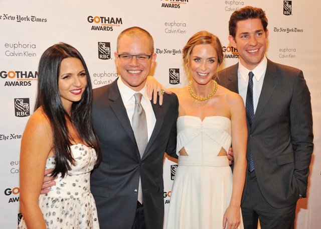 When Matt Damon was here in Vancouver shooting a movie last year, John Krasinski and Emily Blunt would fly in to see him, super low key, and it turns out they were collaborating. Damon and Krasinski co-wrote and co-star in the upcoming Promised Land. And when they’re not working, their families get on really well too.