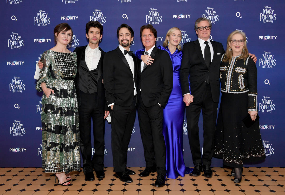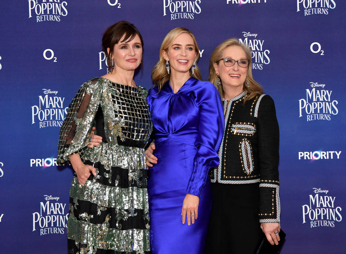 Here’s Emily tonight at the London premiere of Mary Poppins Returns with the cast, including Meryl Streep. Emily’s getting Meryl’s vote too, isn’t she? Right now, Lady Gaga, Olivia Colman, and Glenn Close are presumed to the, interchangeably, in the top 3 spots for Best Actress Oscar. Could Emily come from behind and take them all out?