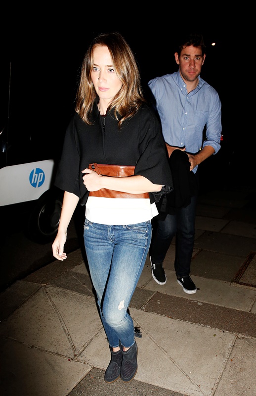 Emily Blunt’s been in London the last few days to promote Edge Of Tomorrow with Tom Cruise. Check them out yesterday at a photo call overlooking Trafalgar Square. She and John Krasinski went out this weekend too – I’ve also attached shots of them leaving Chiltern Firehouse where EVERYONE has been partying lately.
