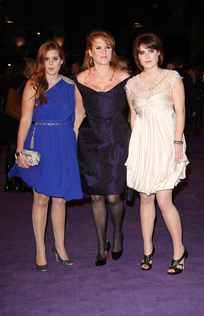 Attaching photos of Sarah Ferguson and her daughters Princesses Beatrice and Eugenie. She’s one of the producers of the film. I love Eugenie’s face (brown hair, in cream). She has a good look.