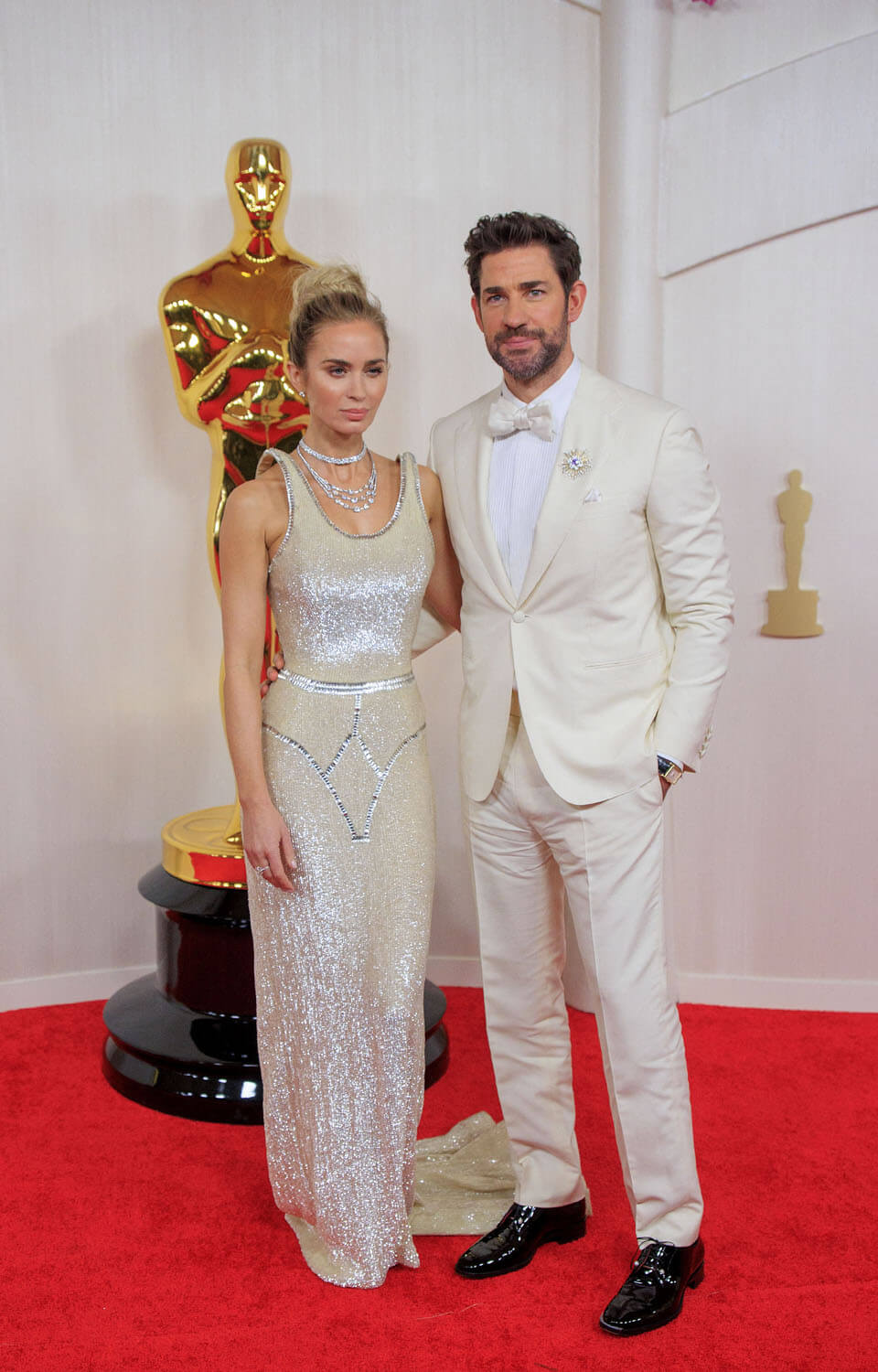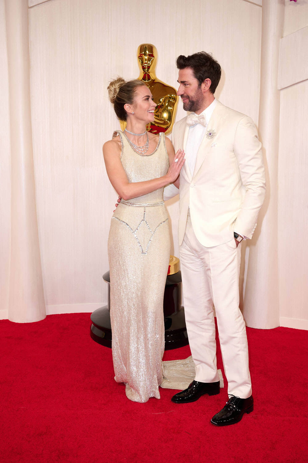 I kept thinking that she wouldn’t have those painful strap marks you can get from sequins. And that she wouldn’t be itchy. And even though this reaction from John Krasinski is almost inexcusably cheesy (as were his heartfelt squeezing-her-hand moments inside the Dolby theatre), I kind of think the dress is worthy of it: