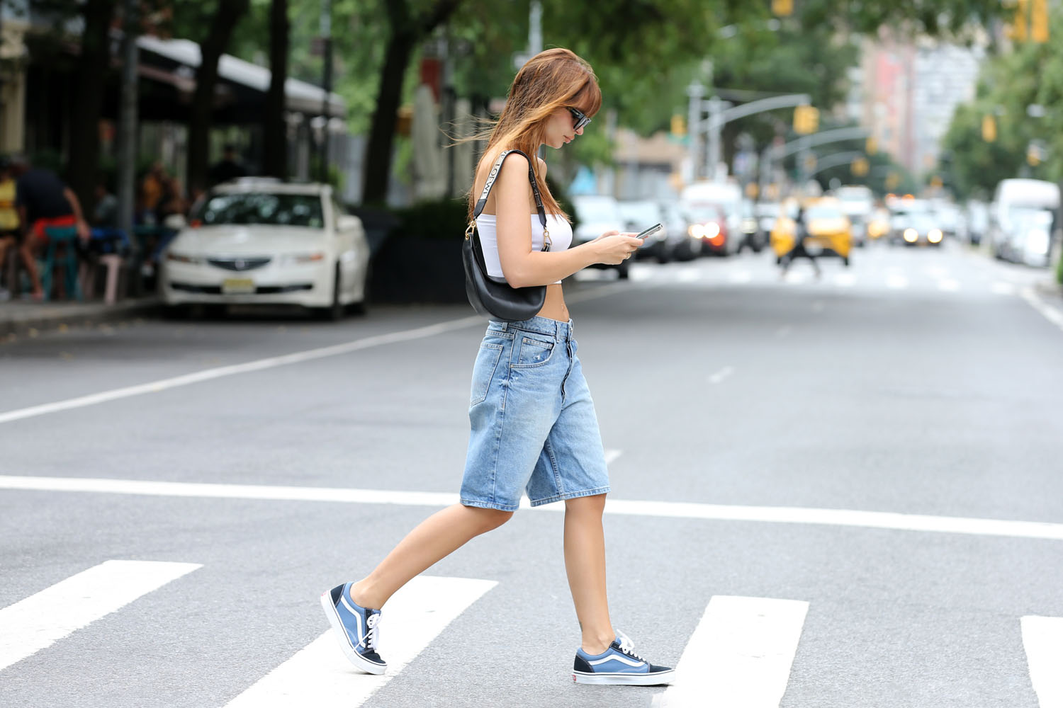 These are pure 90s, just like so much in fashion right now. Bermuda shorts but make it jeans. Or, if you prefer, cut sort of like a pair of basketball shorts, but make it jeans. In my circles, back in the 90s, this was the preferred shorts of skater girls. And now, 30 years later, they’ve become part of the fashion girl’s wardrobe. Which I’m not mad at because if nothing else, they’re so comfortable. And they work with any shoe – sneakers, sandals, oxfords, combats. A thigh high with a sequin crop top and you can roll up to the club too.