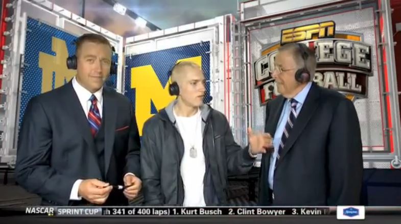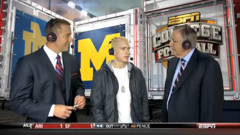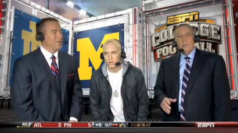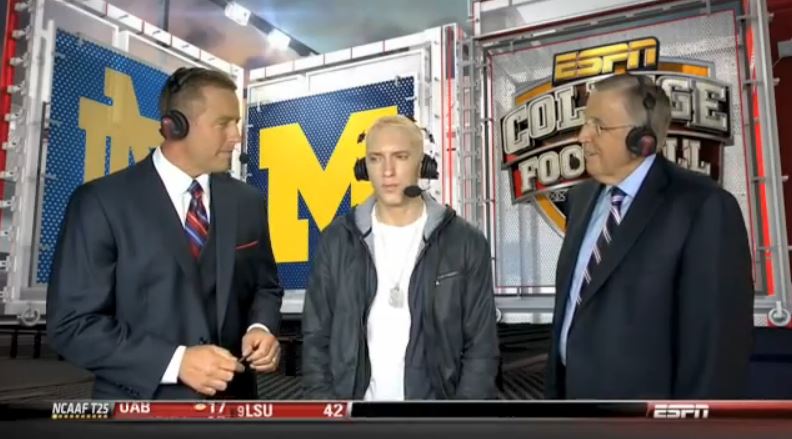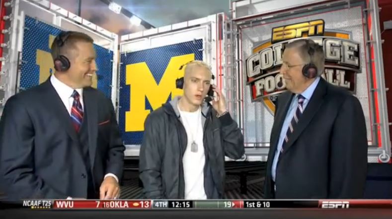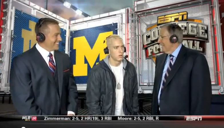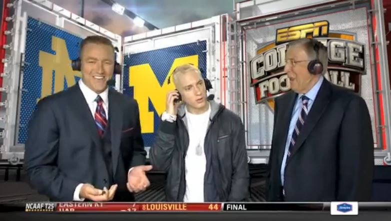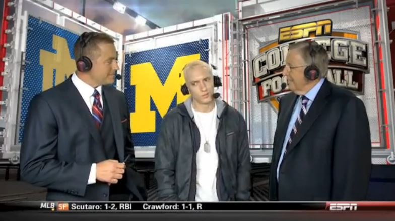 Eminem was interviewed on ESPN during a college football game this weekend and everyone's talking about how he acted weird and loopy because he wasn't super articulate and paused a few times. So when I got home last night I was all prepared for some John Stamos in Australia level mess. Ready to see a total meltdown. Bracing myself for some sadness, for disappointment and worry --