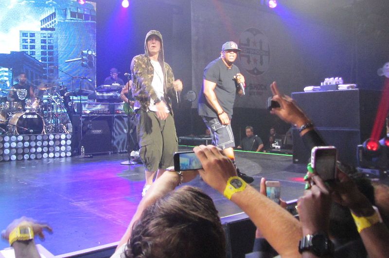 Eminem performed the other night in New York for G-Shock's 30th Anniversary event. Which means it must have been expensive. By now, he could probably buy Detroit. That's the benefit of being a semi-recluse though. They bring the cash money to get you out. And to his credit, Slim Shady delivers.