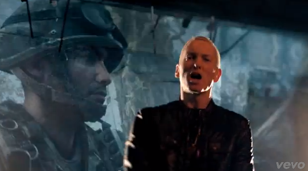 Eminem’s video for Survival is out today. The song was apparently released for Call Of Duty: Ghosts but I’m not a gamer so what I’m seeing here is more Banksy than anything to do with the game. It’s not my favourite Eminem track, no, but I don’t have to love the song to love the video. And, well, mostly I love the video because, sh-t, he looks great in that leather jacket. Actually, he looks great in those pants too. So I guess my Eminem problem is only getting worse. I’ve already told you, many times, that Eminem is daylight for me. Lately, since I hear Berzerk all the time on the radio, the daylight has become daydream. I’ve scripted several scenarios in my mind where Eminem and I might be holding hands together. We always fight about Detroit though. Because Marshall is very loyal to Detroit – where he can stop by his old house and reflect once in a while, like he does in this video. It’s awesome that he’s so loyal to Detroit. But, frankly, I don’t want to live there. I want us to live in Vancouver. Marshall wouldn’t be happy in Vancouver though. I would be happy if Marshall kept his hair dark. But maybe he’s reclaiming his blonde in sobriety?