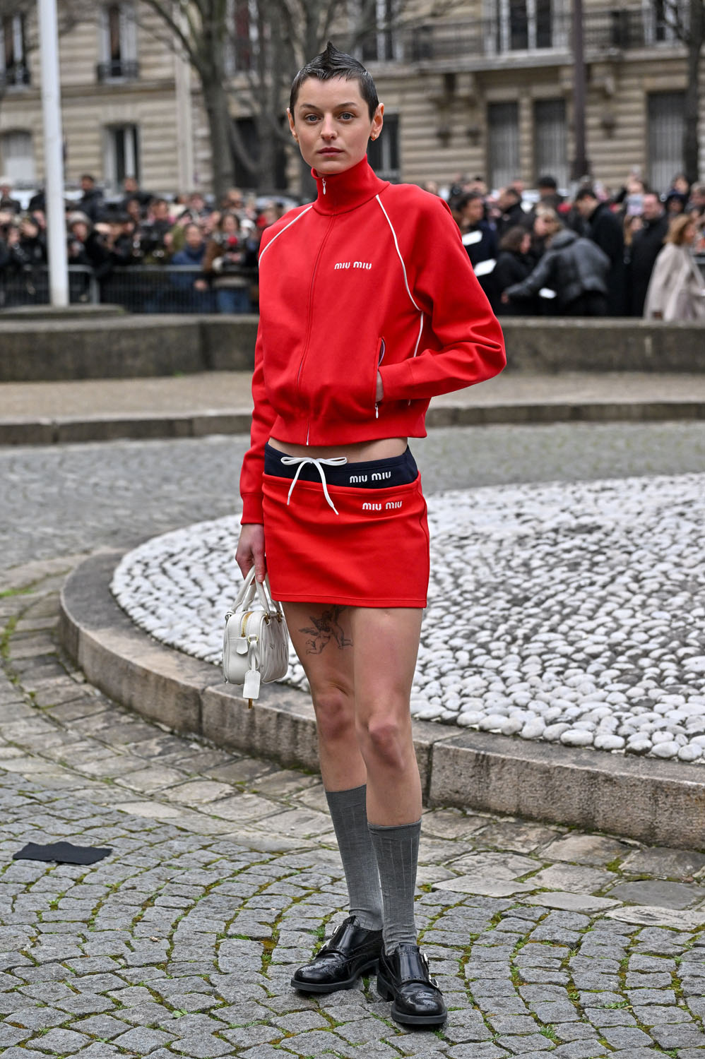 The Louis Vuitton show was a big deal yesterday in Paris but Miu Miu also brought out a lot of celebrities including Emma Corrin who wore an amazing track skirt suit and Sydney Sweeney who wore Emma’s glitter underpants from the last show they walked for the house. (GoFugYourself)