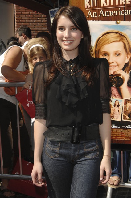 Meanwhile this is Emma Roberts at the premiere of Los Angeles premiere of Kit Kittredge: An American Girl on Saturday looking like a proper 17 year old. Lovely. More and more there is so much of her aunt Julia in her face, non?