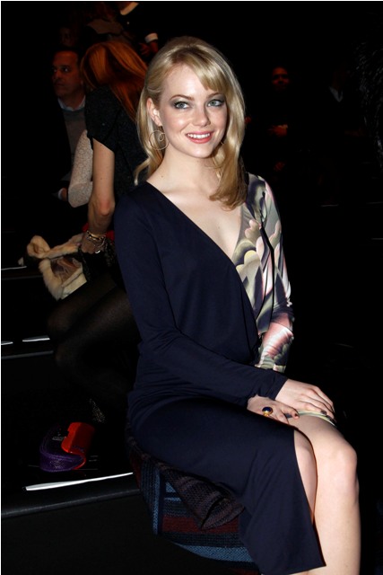 In Paris today at Louis Vuitton. You know I love Emma Stone so much. And it’s great now that she’s becoming some kind of fashion girl. And the next step I suppose is for a fashion house or a cosmetics company to sign her. That’s exactly what her agents are trying to line up. Trust.