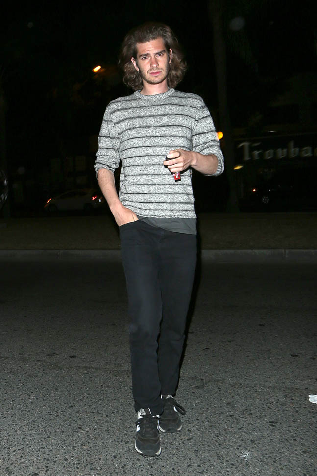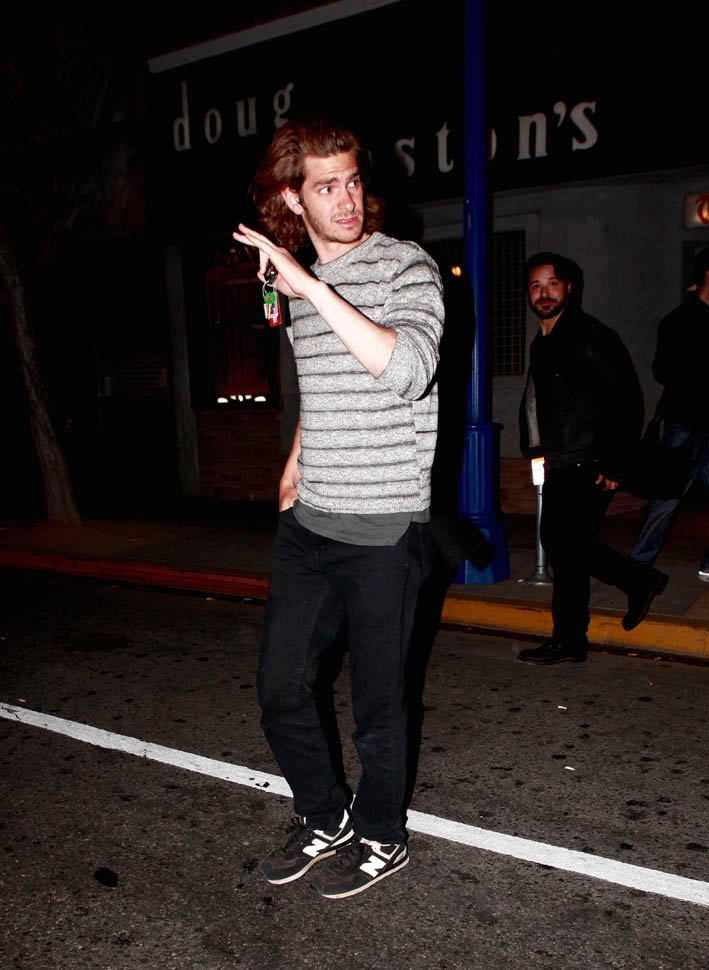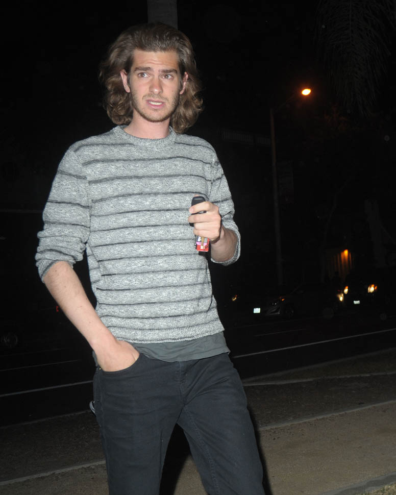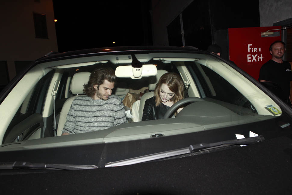 Emma Stone met up with Andrew Garfield after the Aloha premiere last night to see Will Butler perform at The Troubadour. You’ll recall, almost exactly a year ago, Andrew starred in Arcade Fire’s We Exist video, partly shot at Coachella, and buzzed his head – click here for a refresher. Probably hasn’t cut it since then. That’s about 12 month’s growth, right?