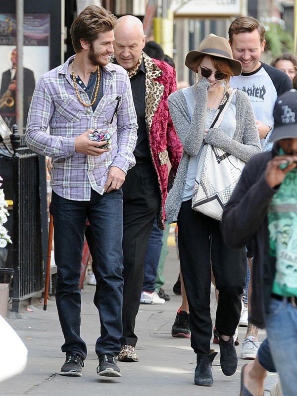 Emma Stone’s been in France the last couple of months working on a Woody Allen movie. Since they haven’t been papped that much while they’ve been away, to us it seems like she and Andrew Garfield have had a quiet summer. Garfield turned 30 last week and they were in London on Monday, apparently celebrating his birthday on a private sightseeing bus tour before hooking up with friends. They’re so f-cking cute these two. It’s been, what?, two years, three years?, and it still hasn’t stopped being cute. What else is there to say?