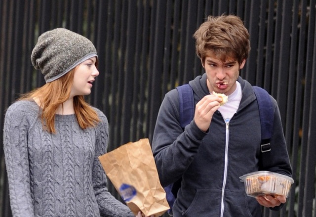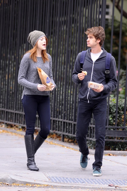Emma Stone and Andrew Garfield went for a walk in New York yesterday before she hit up the tribute to Pedro Almodovar where she looked awesome - click here to see if you missed it in LifeStyle this morning.