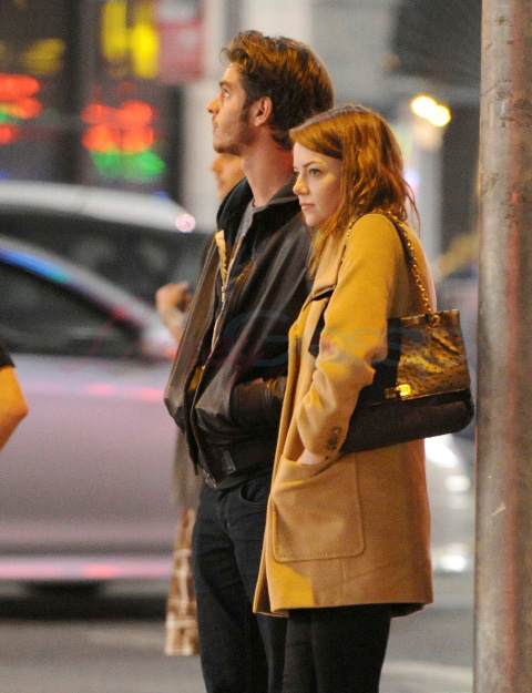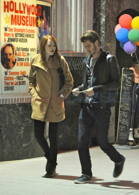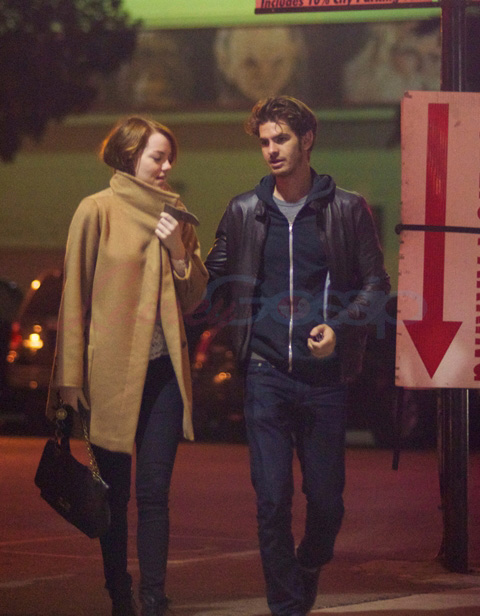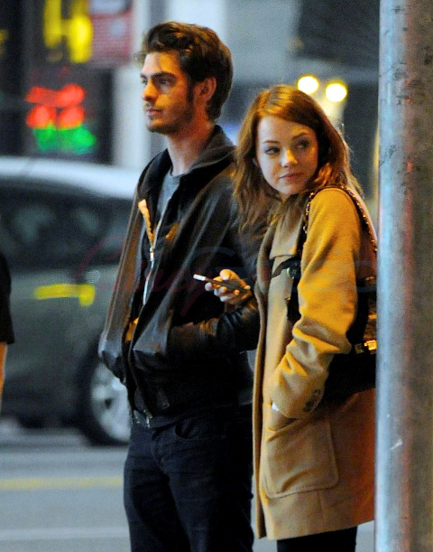 Emma Stone and Andrew Garfield went to the movies the other day after getting something to eat. You know, like a regular date. And everything’s going great. Do they talk about how awesome it’s been for them, personally and professionally? Emma’s on a high from The Help and the wicked run she’s had for the last 18 months. Andrew getting hyped up for Spider-Man and is heading to Broadway in the Spring for Death of a Salesman. And they’re hot and they’re dating and I am obsessed with them.