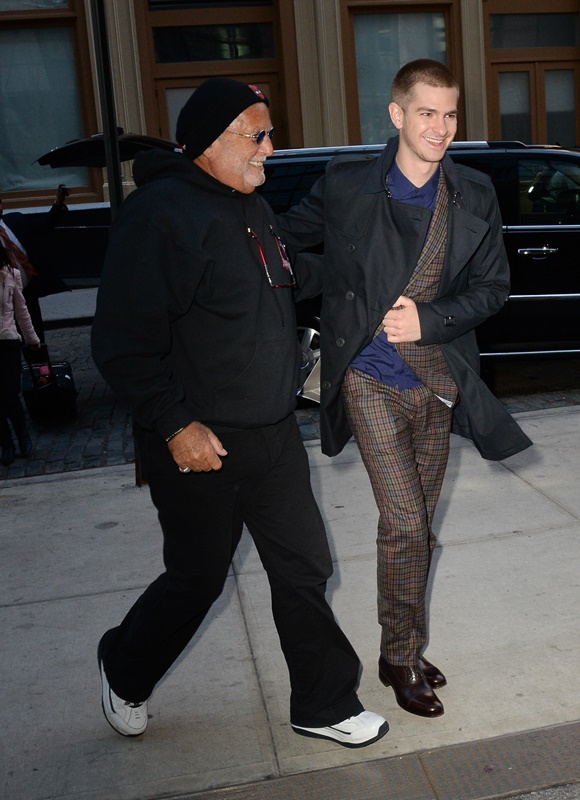 So. The premiere tonight. You remember Batkid? US Weekly reported a few weeks back when that stupid rumour was going around about Andrew punking off the Oscars (never happened) that he invited Batkid to join him at the event. This is something to look out for in a couple of hours, in addition to what Emma Stone will be wearing on the final major carpet of this press tour.