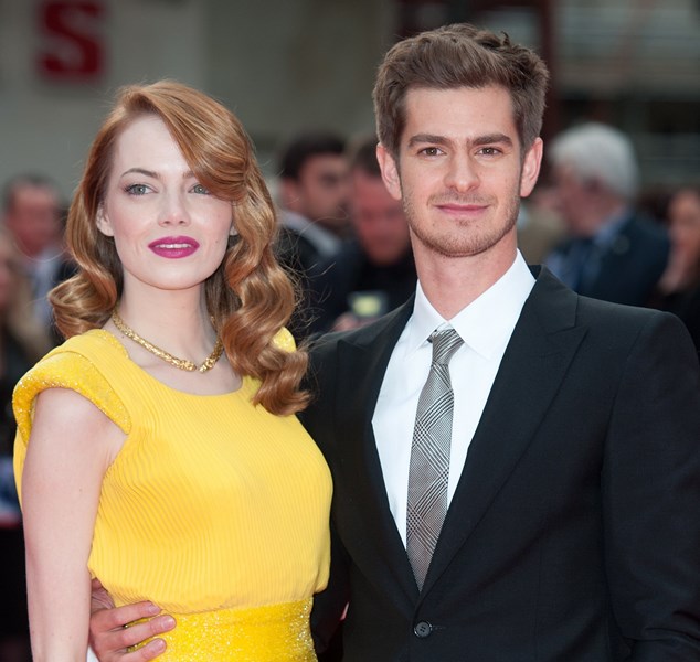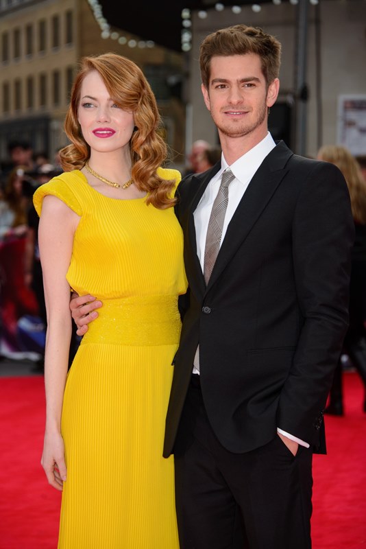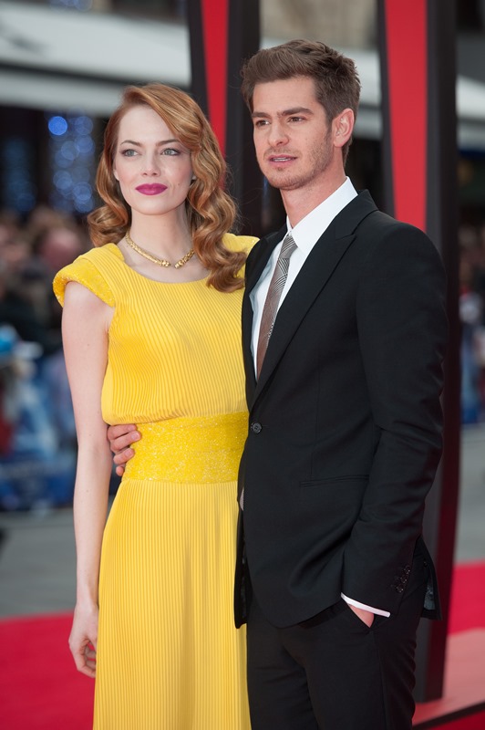Emma Stone and Andrew Garfield are currently promoting The Amazing Spider-Man 2. They also seem to be promoting the Spice Girls. It started, of course, as you know, in Australia, when Emma broke down over Scary Spice Mel B. Every interview since has been about the Spice Girls and her devotion to them. In London, where the Spice Girls were born, there had to be more Spice Girls + Emma Stone mash-ups. This time Andrew got involved.