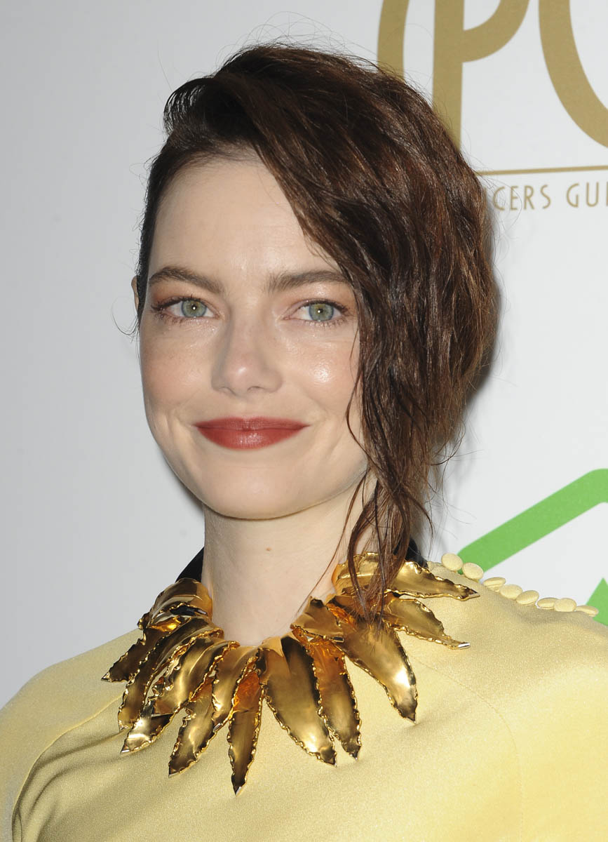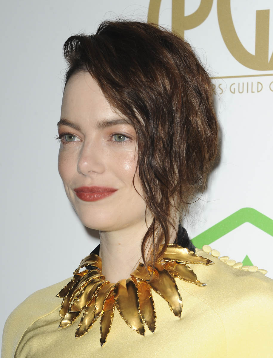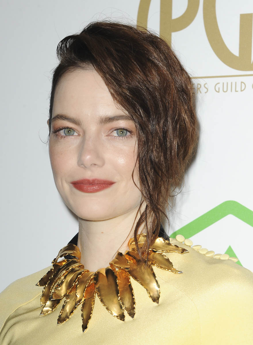 Also attached – Emma at the Producers Guild Awards on Saturday. I love this look. And I love the neckpiece. And while the makeup isn’t “pretty”, that’s exactly why I’m into it. Because it may not be pretty but it works with the look. For Emma it’s always in service of the look first which is why her style is so often singled out.