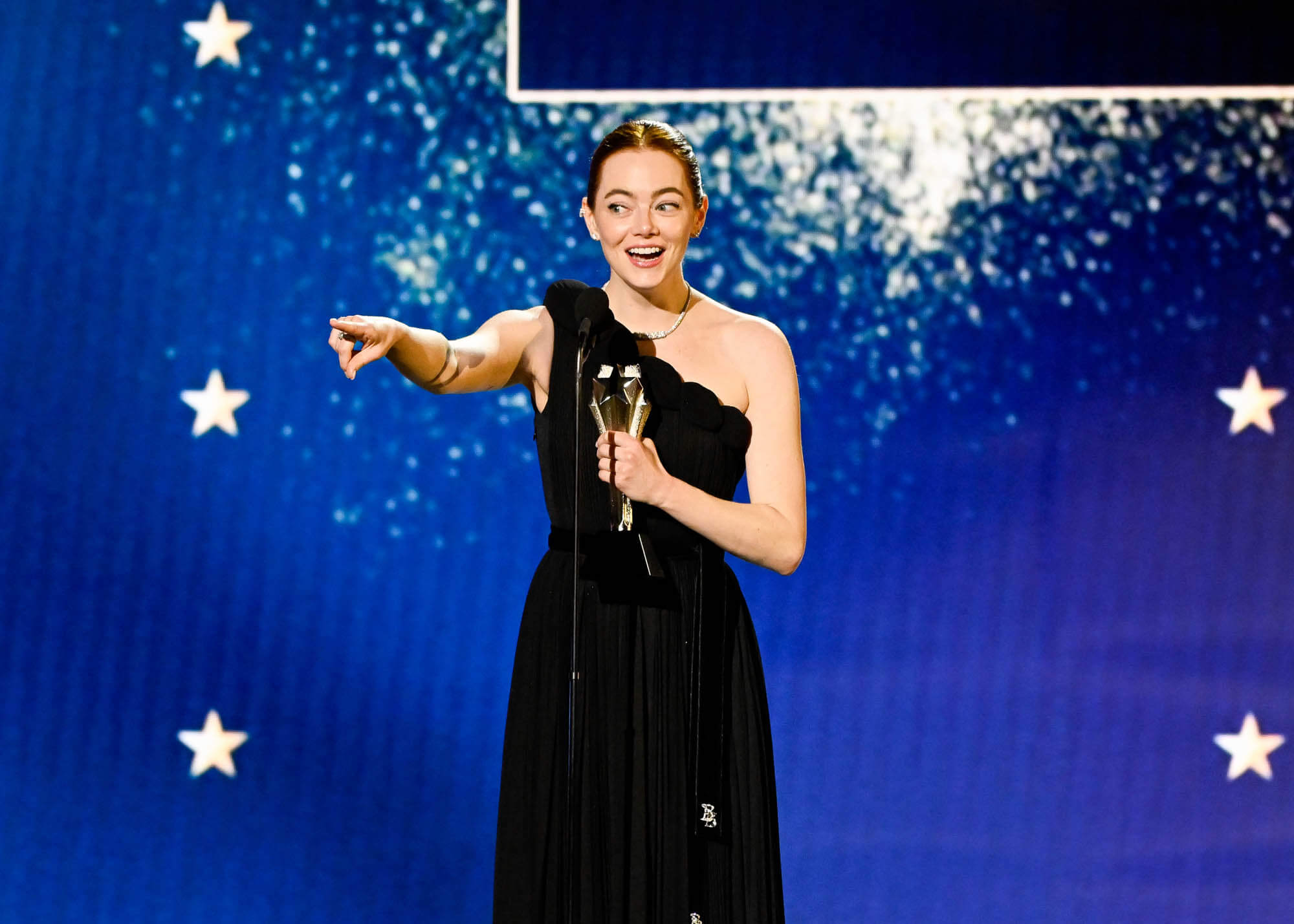 In the end of the Critics chose Emma Stone for her performance in Poor Things and this really is the first award show where she and Lily went head-to-head, as they were nominated and won in different categories at the Golden Globes. It was an opportunity for Emma to test-drive her speech and she started by acknowledging her fellow nominees, all of whom were shown on camera sending love right back to her.