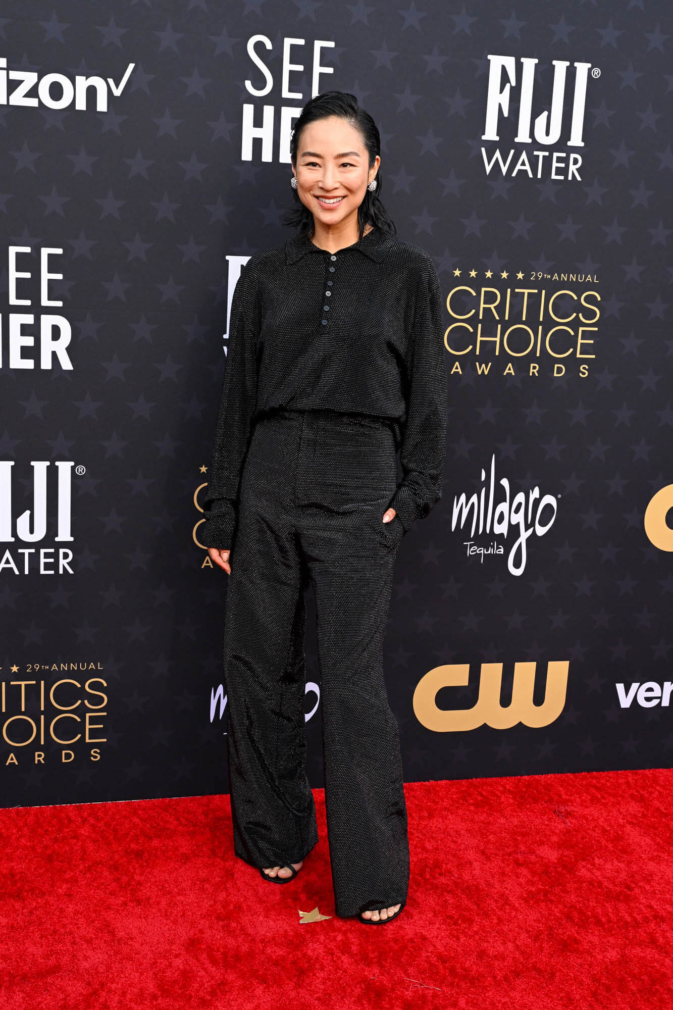 And finally, our girl crush Greta Lee. The Critics Choice Awards could very well be one of Greta’s last stops. She was not nominated for a SAG which really hurt her chances for an Oscar nomination. However, if she is nominated for a BAFTA she could be right back in it. The BAFTA nominations will be announced this coming Thursday. And did you see her look at the BAFTA Tea Party this weekend?