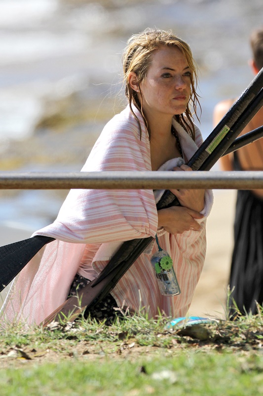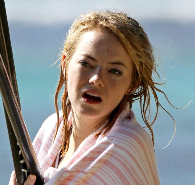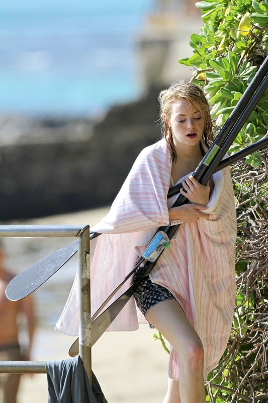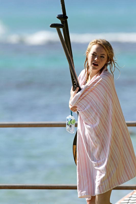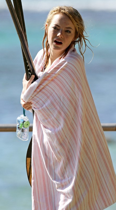 I’ve been holding these photos of Emma Stone in Hawaii on the set of Cameron Crowe’s movie for a couple of days and look – there’s now a new trailer for The Amazing Spider-Man 2! This one starts off more hijinky. And then the people go Twi-Hard over Spidey. And there’s another movie with a plane disaster. And I keep thinking there are too many villains. But then they kiss – passionately! And they flirt! And exchange cute quips! And, really, that’s all I care about. Because God I love them as a couple. But I don’t love the way he stops her with his web and goes off to save the world. Especially when Emma can do so much more.