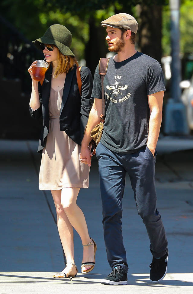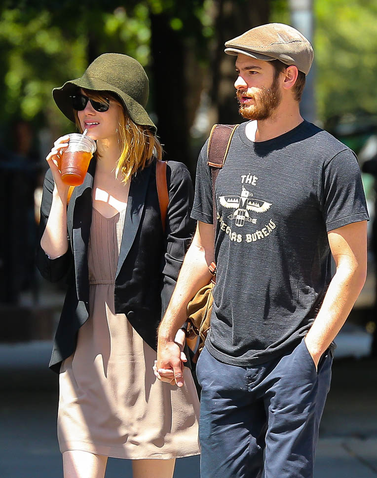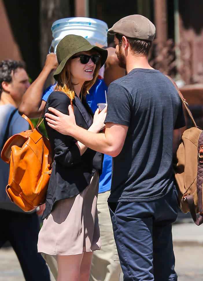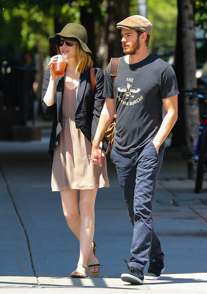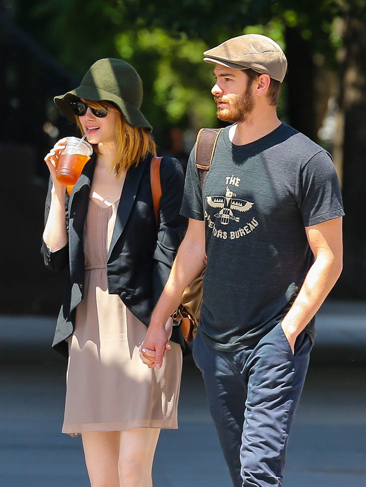 Emma Stone and Andrew Garfield were in New York today being cute and holding hands, enjoying the summer. There are rumours that the two are engaged. Whatever. I just care that they're happy and still together. In fact, if getting engaged jeopardises that, because of the pressure, then maybe they shouldn't be engaged. I reject those rumours.
