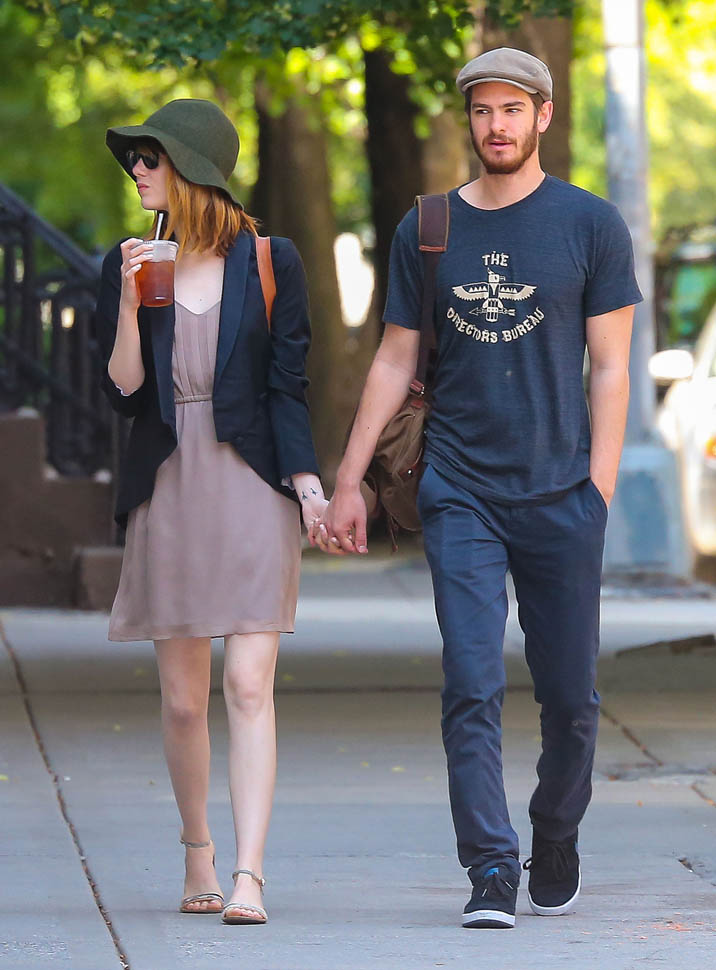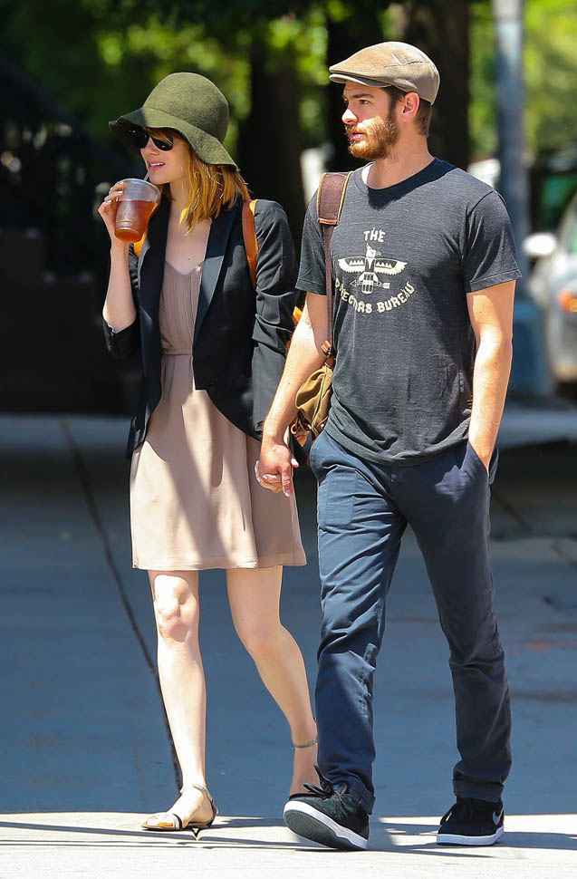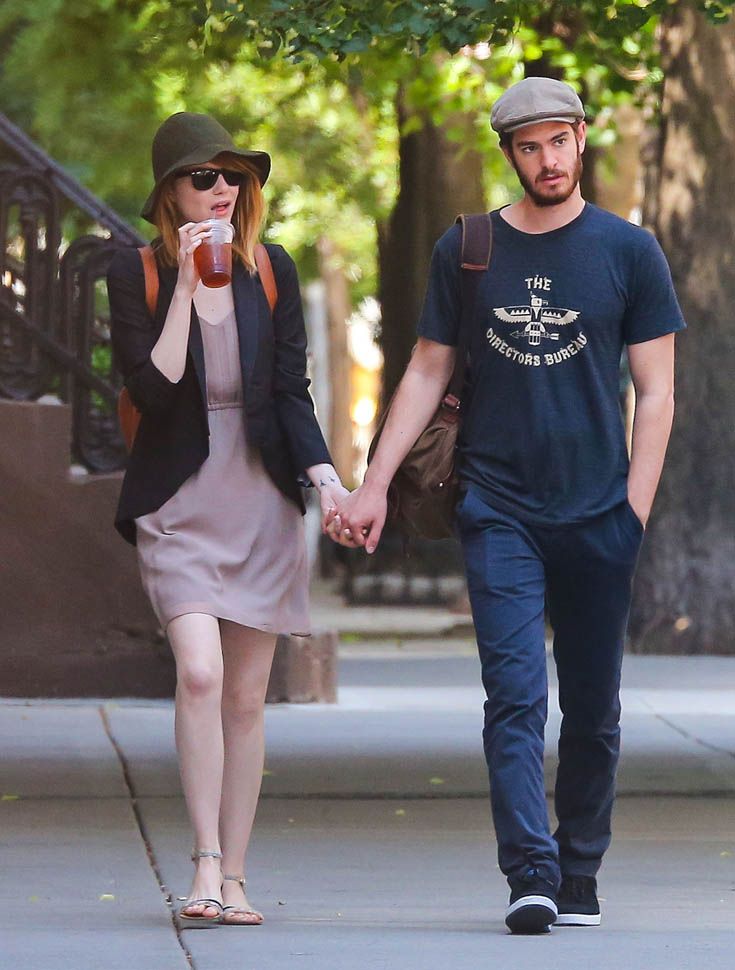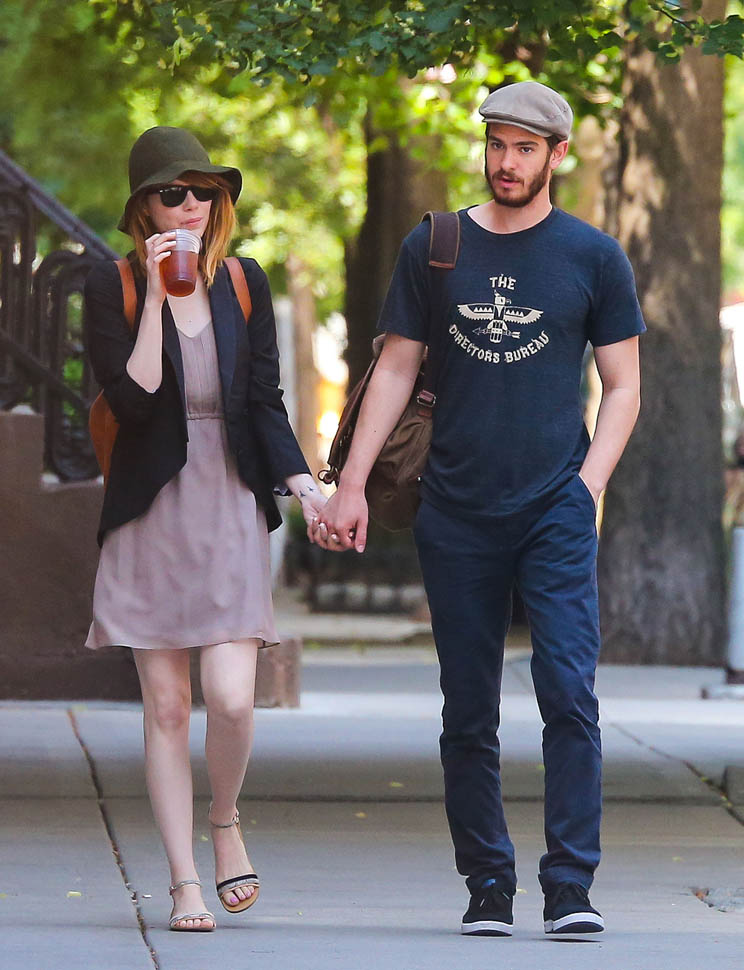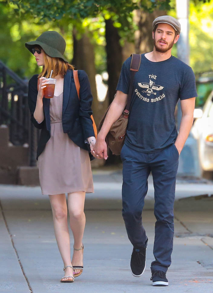 Emma Stone and Andrew Garfield were in New York today being cute and holding hands, enjoying the summer. There are rumours that the two are engaged. Whatever. I just care that they're happy and still together. In fact, if getting engaged jeopardises that, because of the pressure, then maybe they shouldn't be engaged. I reject those rumours.