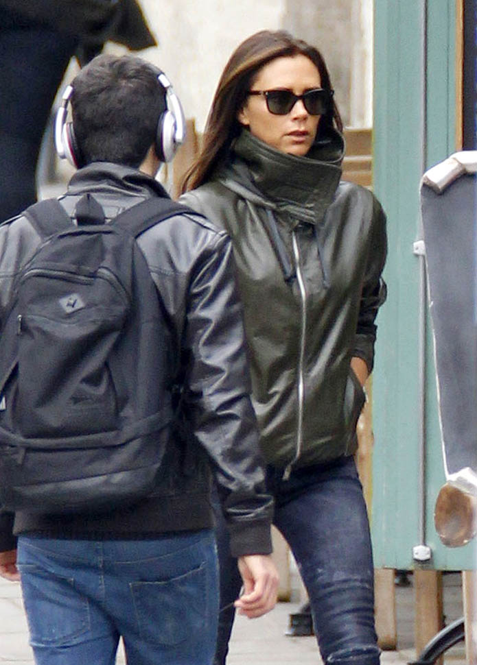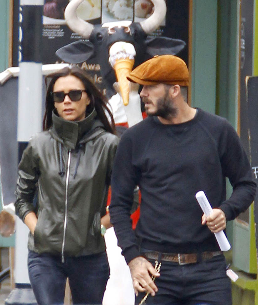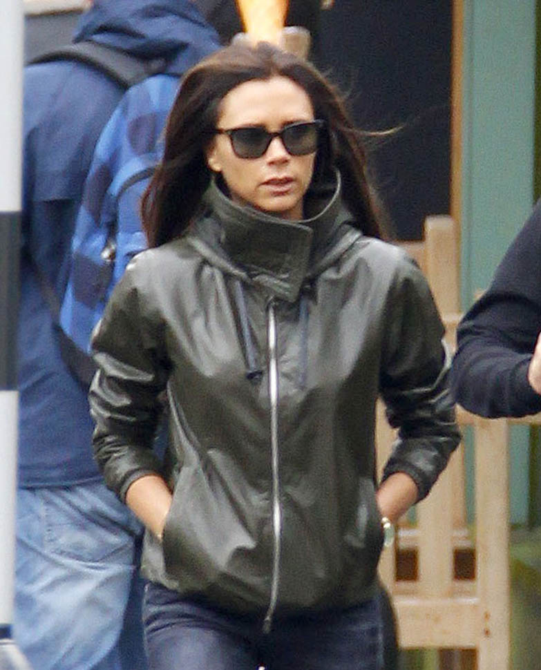 Over in London, the Beckhams walked around on a rainy day, their moods matching their fellow countrymen, bummed out over the World Cup loss to Italy. That raincoat she's wearing -- is it leather? I need it.