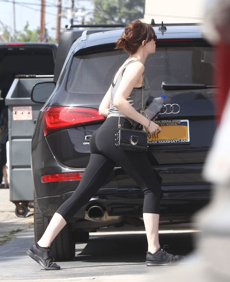Anyway, here’s Emma at the gym the other day. This is where we see her most often now – at the gym, she’s taking care of herself, she’s healthy – although she did step out for one party on Oscar weekend at an event to celebrate Spotlight at the Sunset Tower in an outfit that actually looks like gym clothes: