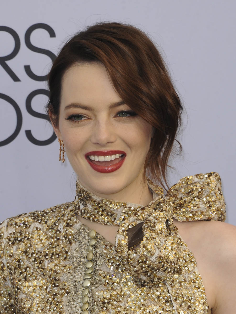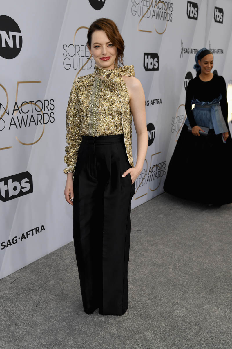 I feel like I would have been more excited about this in 2015. It’s a great outfit, don’t get me wrong. It’s just that she’s done it before, or elements of it before. We’ve seen Emma often in pants. And we’ve seen her before with a neck bow, most memorably here: