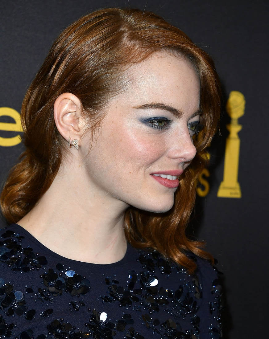 Emma’s lips have that tone that Jessica Chastain’s did at the same event. I can see it’s lipstick but it’s such a well-chosen colour that it’s worn almost like a stain, and I’d believe it if you told me that’s just what her mouth looks like naturally. Is it a redhead thing? I have never, ever been able to do the same.