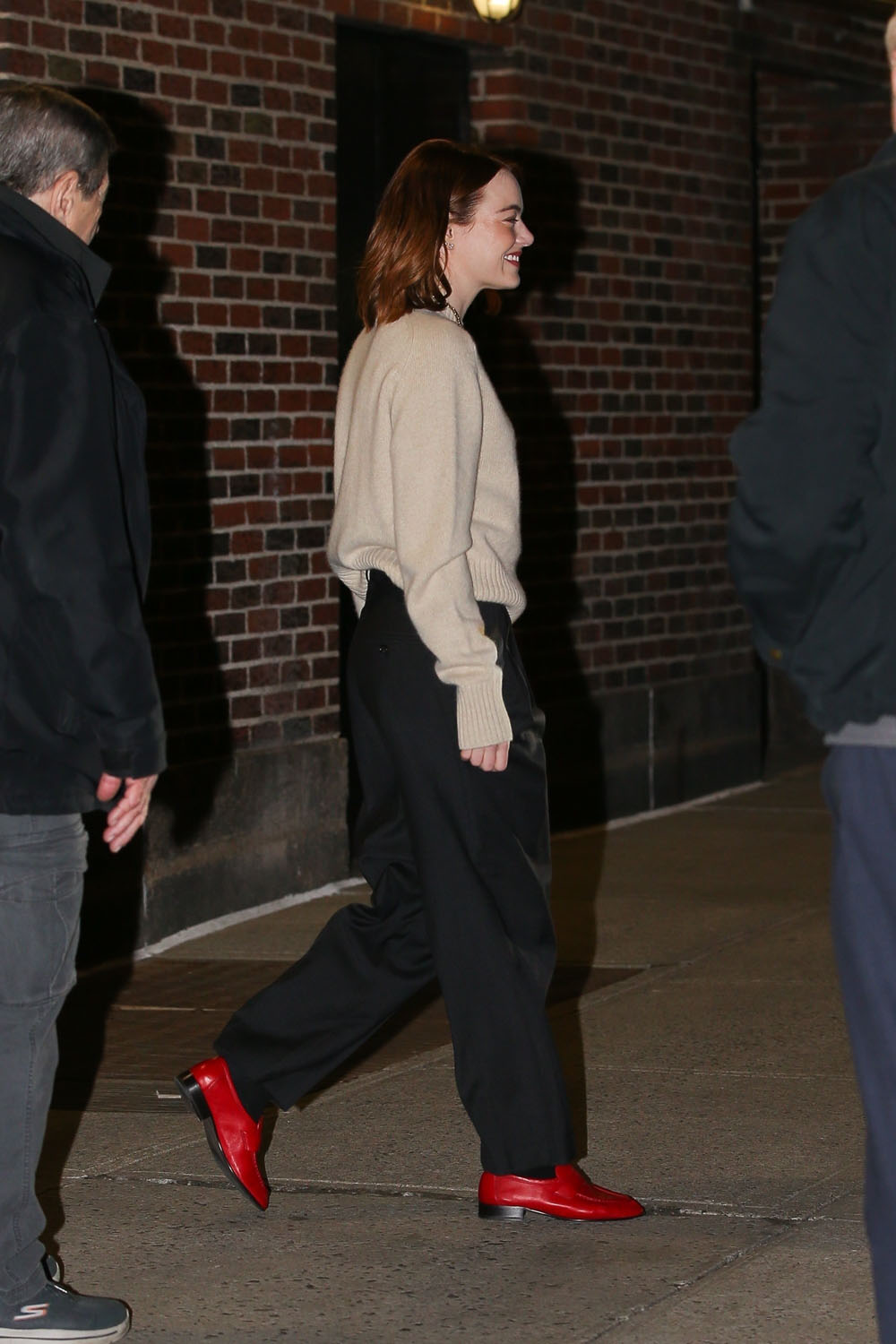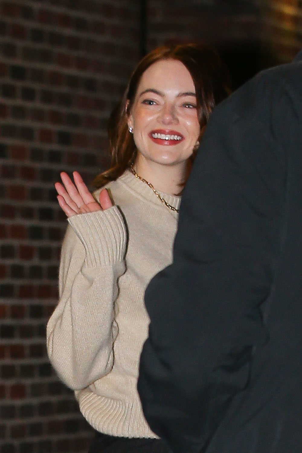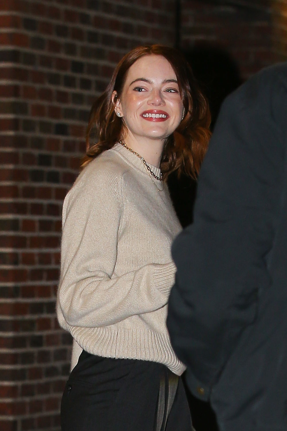 Emma Stone continued promoting Poor Things in New York yesterday, finishing the day that started at Good Morning America at The Late Show with Stephen Colbert, where she talked Jeopardy! again.
