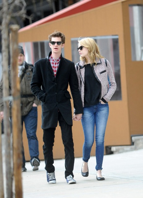 Andrew Garfield is currently performing on Broadway in Death Of A Salesman. Emma Stone apparently met with Rob Marshall yesterday in New York and many are now speculating that she’s being considered for a role in Marshall’s film adaptation of Into The Woods. Oh, can you imagine the nattering from the theatre geeks?