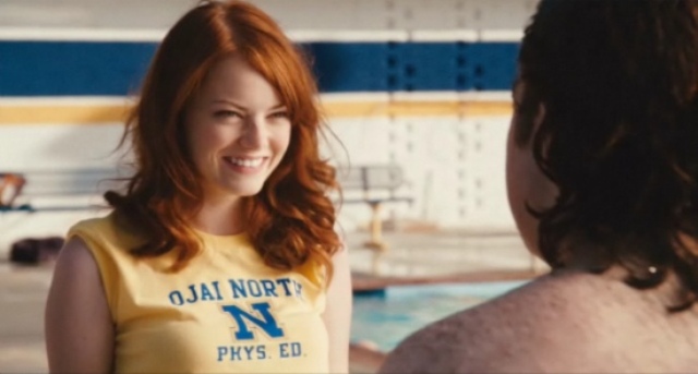 And this is where Easy A totally wins me over. Most movies would have Olive in the bathroom crying, and then plotting how to clear her name. But not this movie, not Emma Stone. Instead Olive pins a red A on her clothes and stomps down the hallway, chin up and eyes flinty. She’s Hit Girl grown up. Love it. I also love the cast. Stanley Tucci and Patricia Clarkson are Olive’s parents and Thomas Haden Church (vastly underused) and Lisa Kudrow are teachers in her school. The kid cast is slightly too old to be playing high schoolers (I’m looking at you, twenty-seven-year-old Cam Gigandet), but that’s probably what makes this movie work. The “kids” are actually old enough to realize how bullsh*t high school is and how little what people say about you in third-period English means five minutes after your graduate. Surviving high school is all about pinning the red A on your chest and owning your identity.