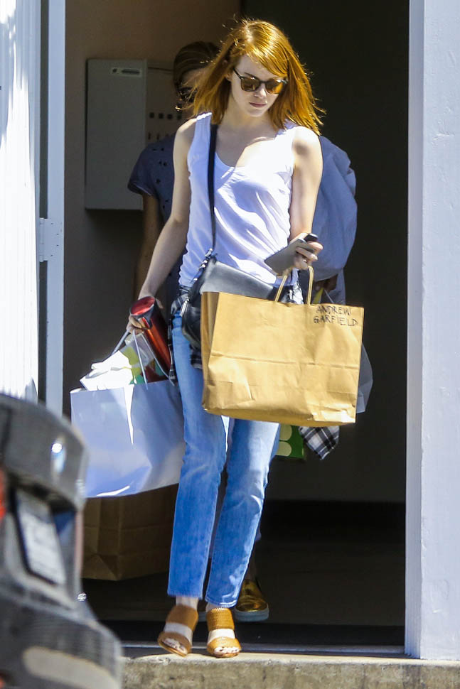 Emma Stone was photographed leaving her stylist’s yesterday with several bags, one of them with “Andrew Garfield” written on it. So…