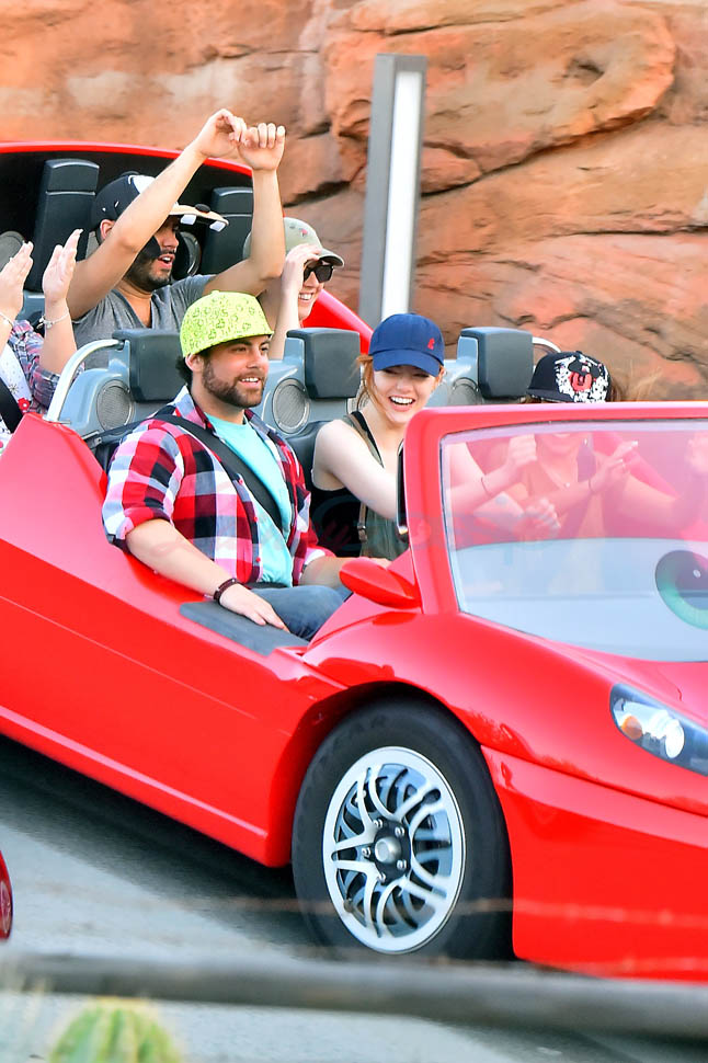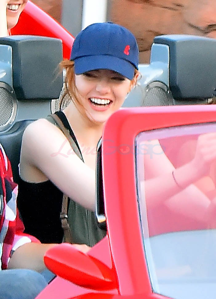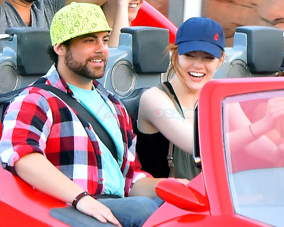 Just as everyone was piling on about whether or not she and Andrew Garfield have broken up, photos were released of Emma Stone at Disneyland with her brother. Shameless promotion: this was also on the same day that we announced on The Social that we are also shooting two live shows from Disneyland on May 20 and 21st. The ride that she’s on here is Cars, right? Ryan Gosling and Guillermo del Toro were photographed on the same ride a couple of months ago. Click here for a refresher. It’s fun. Like you get weirdly competitive while you’re racing the other computer controlled car in the next lane.