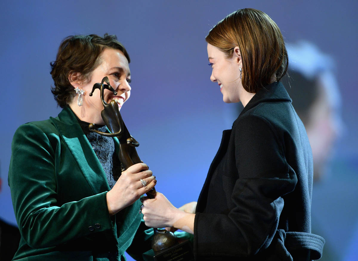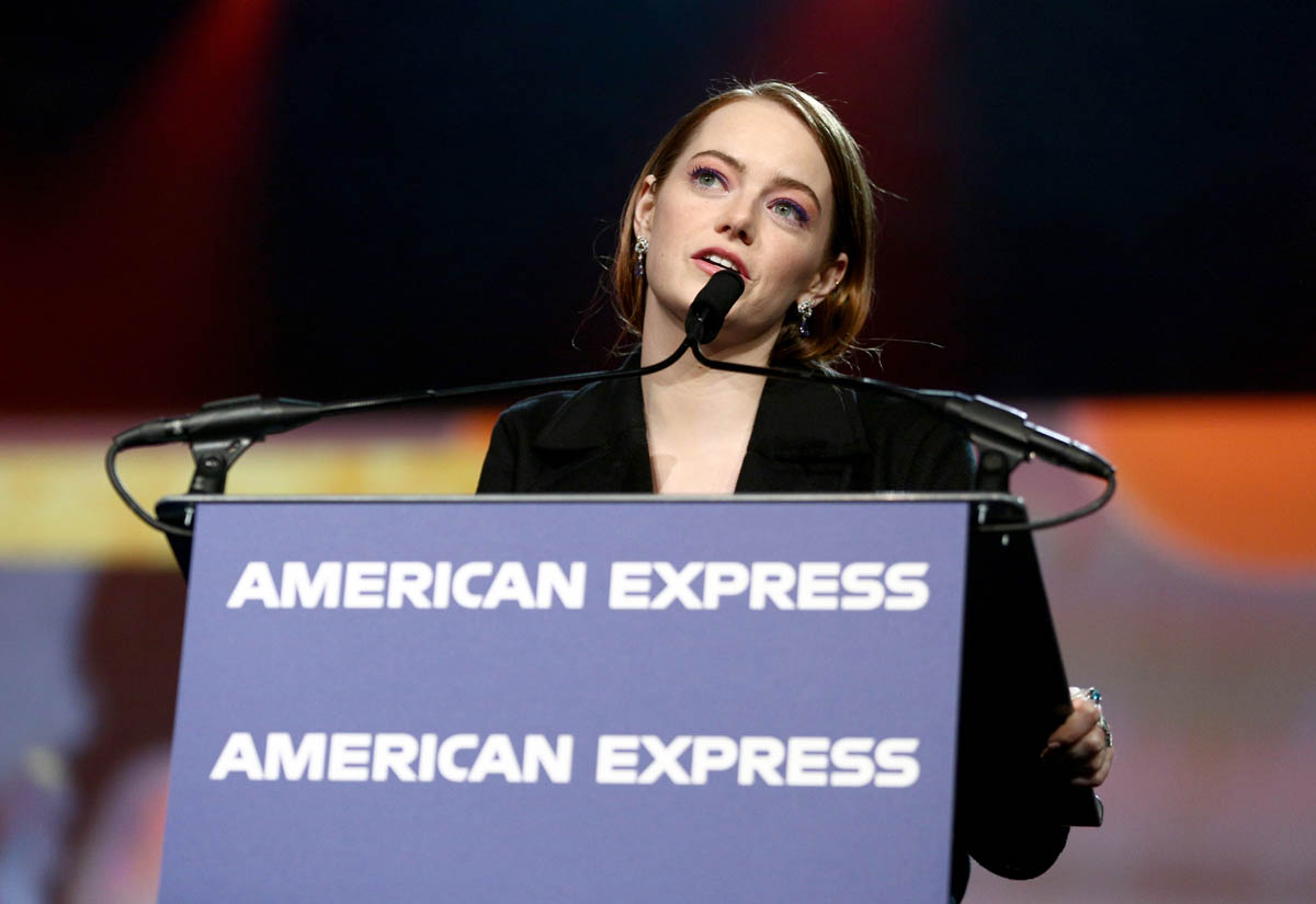 Emma is probably going to be to be nominated for a Best Supporting Actress Oscar this year. She’s already nominated for a Golden Globe, Critics’ Choice, and two SAGs. She is not expected to win. So it’s a no-pressure year. She gets the prestige of the nominations, of being involved in a contending film, of having that on her increasingly impressive resumé, but she doesn’t have to carry the burden of being in that spotlight. Easy breezy. In other words, the season will be a lot more fun for her. Which means, at least I hope, that the fashion will be more fun. We saw signs of it last night in Palm Springs.