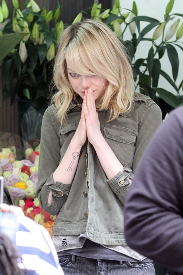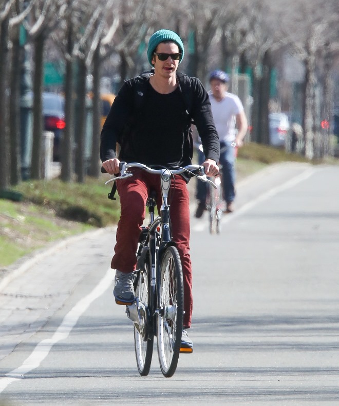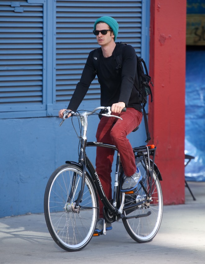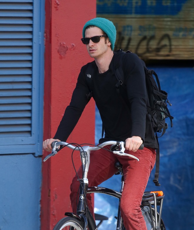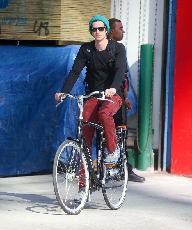 Here’s Emma in New York this week shooting Birdman with Michael Keaton. And here’s her boyfriend Andrew Garfield riding his bike...in a green hat. This is terrible. Someone needs to give him the Chinese on what it means to be wearing a green hat. Did Robert Pattinson ever wear a green hat?