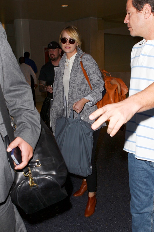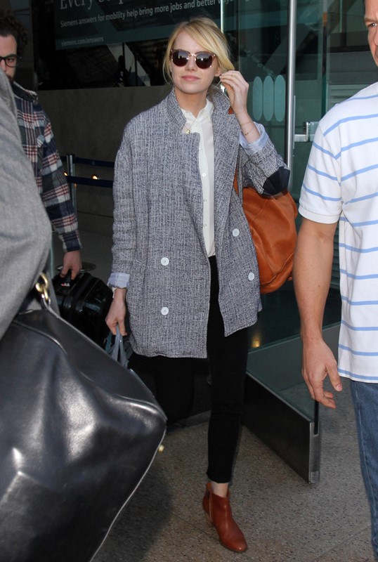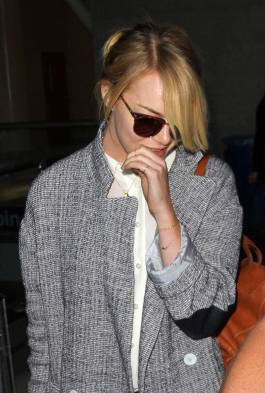 Emma Stone was photographed at LAX yesterday, presumably arriving from Hawaii? She’s been shooting a movie there for Cameron Crowe. Is Andrew Garfield in LA? Oh I hope so. Last week US Weekly reported that they’ve been talking about marriage and starting a family. It’s just that their schedules have been so tight – particularly hers – that they’re not sure about timing.